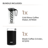 Blade Coffee Grinder (KF2010): Quickly grind whole coffee beans to fine grounds with this compact, 3.5oz countertop grinder. Easy to use with a safety lid and multi-purpose functionality for grinding nuts and spices. Includes a cleaning brush