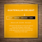 Cultivated at high altitudes on the pacific slopes of Guatemala, this elegant, medium body single-origin starts with a spicy aroma backed up by the signature dark chocolate smoothness and smoky flavor of the region.