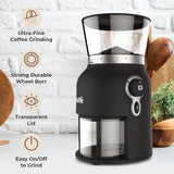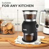 - 120V / 150W ELECTRIC MOTOR. This electric-powered coffee grinder tool comes with a strong, durable stainless-steel burr mechanism.